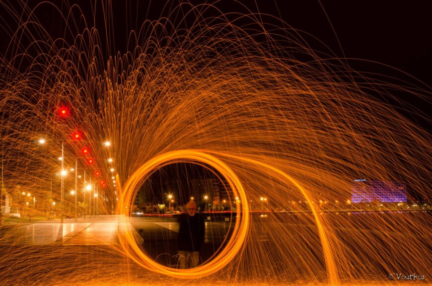 Η φωτογραφία είναι από ένα πείραμα που κάναμε πολλά χρόνια μετά φωτογραφίζοντας το εφέ που δημιουργείται όταν στριφογυρίζεις αυτό το σύρμα που λέγαμε, που τρίβεις τις κατσαρόλες